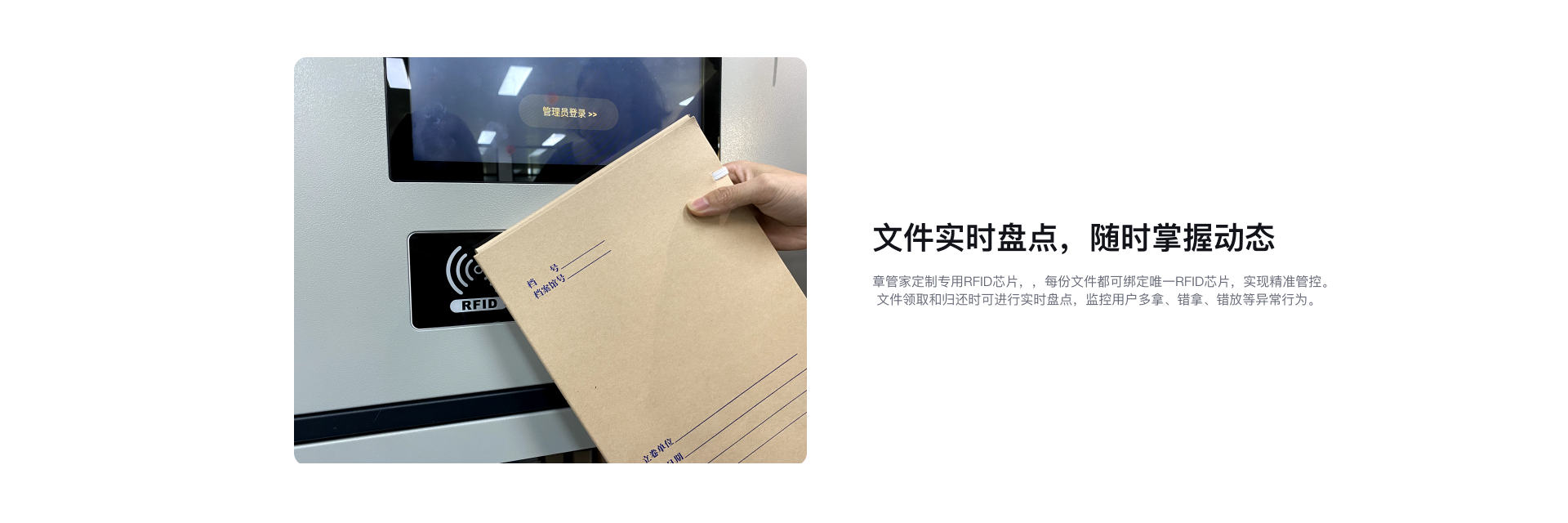 针对企业经常需要借阅的流转文件,帮助企业解决管理难题。使用时 为文件绑定专用 AirRFID芯片,结合管理平台,实现对纸质文件的实时盘点、 便捷查找。产品独有隔空寻物技术,通过光源标记实现对文件的快速查找取存。